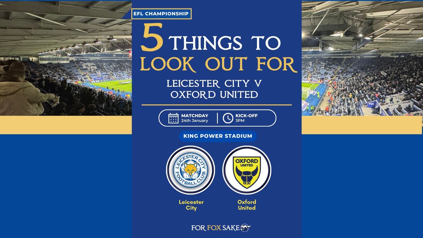 Leicester City return to the King Power Stadium after three away games on the bounce. Relegation-threatened Oxford United are the visitors and there are plenty of questions to ask ahead of this one. For Fox Sake's Rob Hayes picks out five things to look out for on Saturday